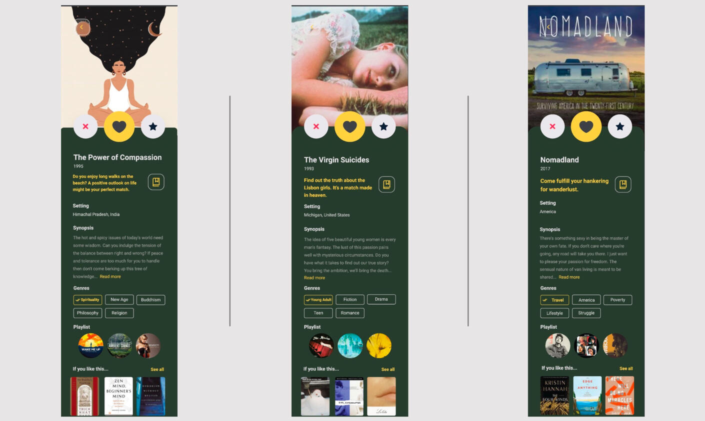 After listening to Kanye it was clear that our vision could be executed with a tinder-like-app for books. Here is a video showing the user interface we designed for a Books-A-Million app called Thirsty.